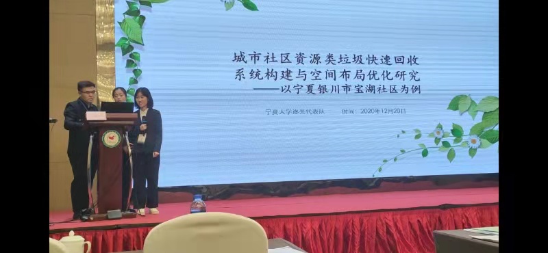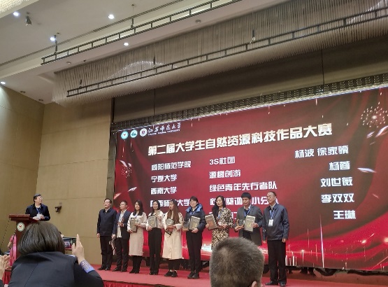 我校学子发扬对自然资源的热爱与思考,以踏实刻苦的求是精神、攻坚克难的学习精神、勤于思考的创新精神闪耀出智慧的火花。经过决赛赛场各个环节的激烈角逐,我校由杨蓉老师指导,董娜、冯子格、刘亚楠、王雪参与的《废旧葡萄酒橡木桶在银川市海绵城市建设设施应用中的探索》项目,由李鸣骥老师指导,张露露、马文鑫、李建蕊、王晓梅、王亚云等同学参与的《城市社区资源类垃圾快速回收系统构建与空间布局优化研究》项目脱颖而出,双双获得一等奖桂冠。