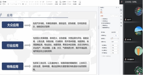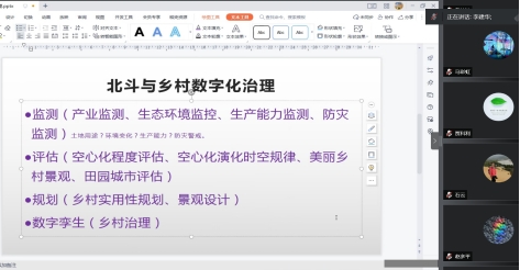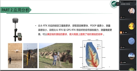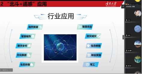 佘璐结合“北斗+遥感”在智慧城市、数字乡村、防灾减灾、智慧农业等领域的应用分享了“北斗+遥感”在自治区重点产业如枸杞、葡萄酒、畜牧业等产业的应用潜力。郭占军重点介绍了GNSS的详细发展情况。李吉龙重点分析了北斗在地形测绘中的应用前景。张佳瑜分享了自己的一些研究成果,包括对城市热岛的研究,地震避震疏散路线规划等内容。李建华重点探讨了“北斗+遥感”在乡村数字化治理的应用。贾科利对“北斗+遥感”的应用进行了详细介绍,分享了团队开展的基于空天地一体的土壤盐渍化监测评估系统研究成果。石云、马彩虹、何杰、白林波等老师也对“北斗+遥感”的应用进行了分析探讨,包括在森林火灾防灾救灾、交通系统各领域的领域,并指出北斗+遥感有很大的应用前景与市场潜力。