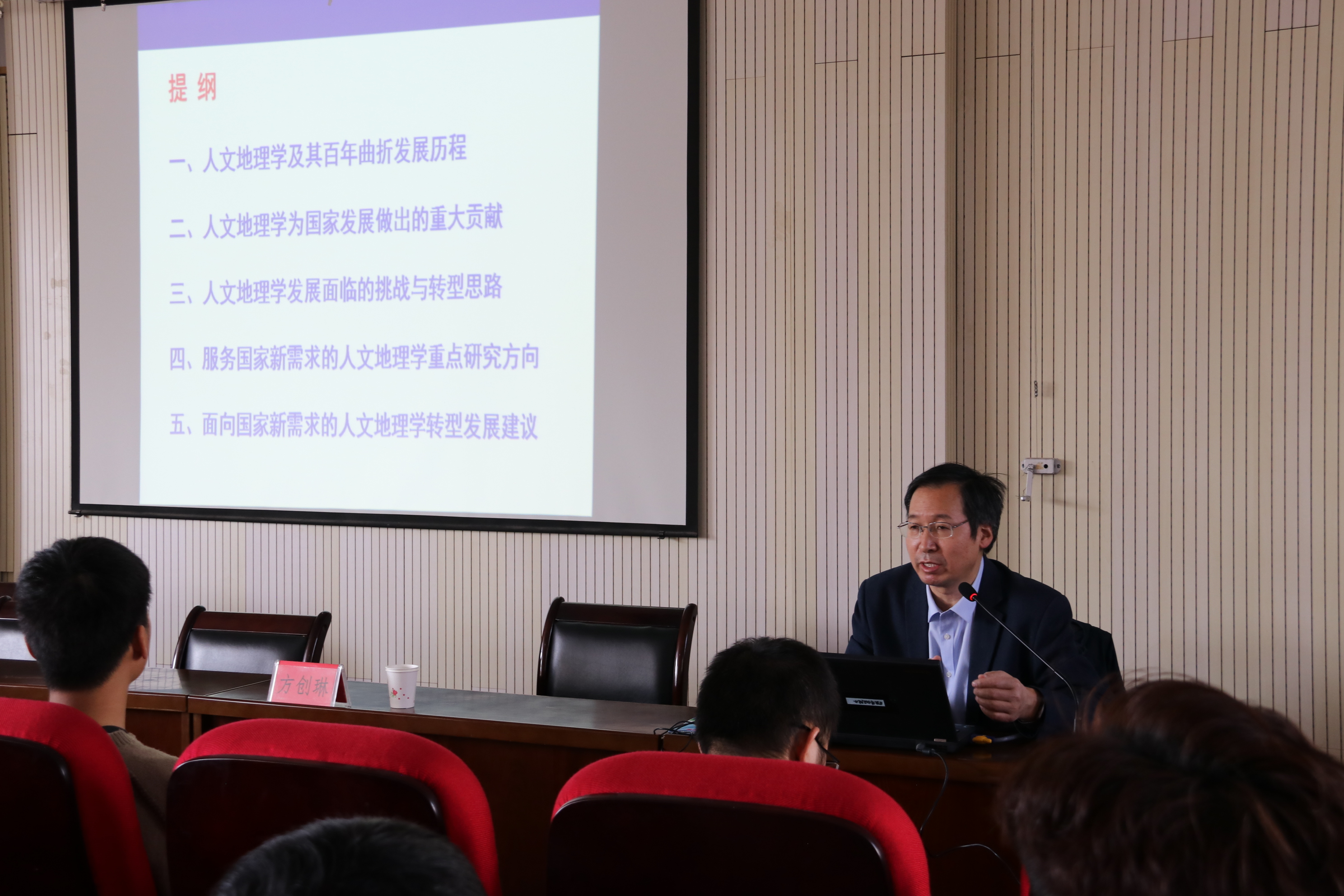 3月4日下午,中国科学院地理科学与资源研究所研究员方创琳研究员应邀来香蕉视频 作题为《中国人文地理学百年发展与转型》学术报告,讲座由院长刘小鹏教授主持,学院教师和研究生聆听报告。