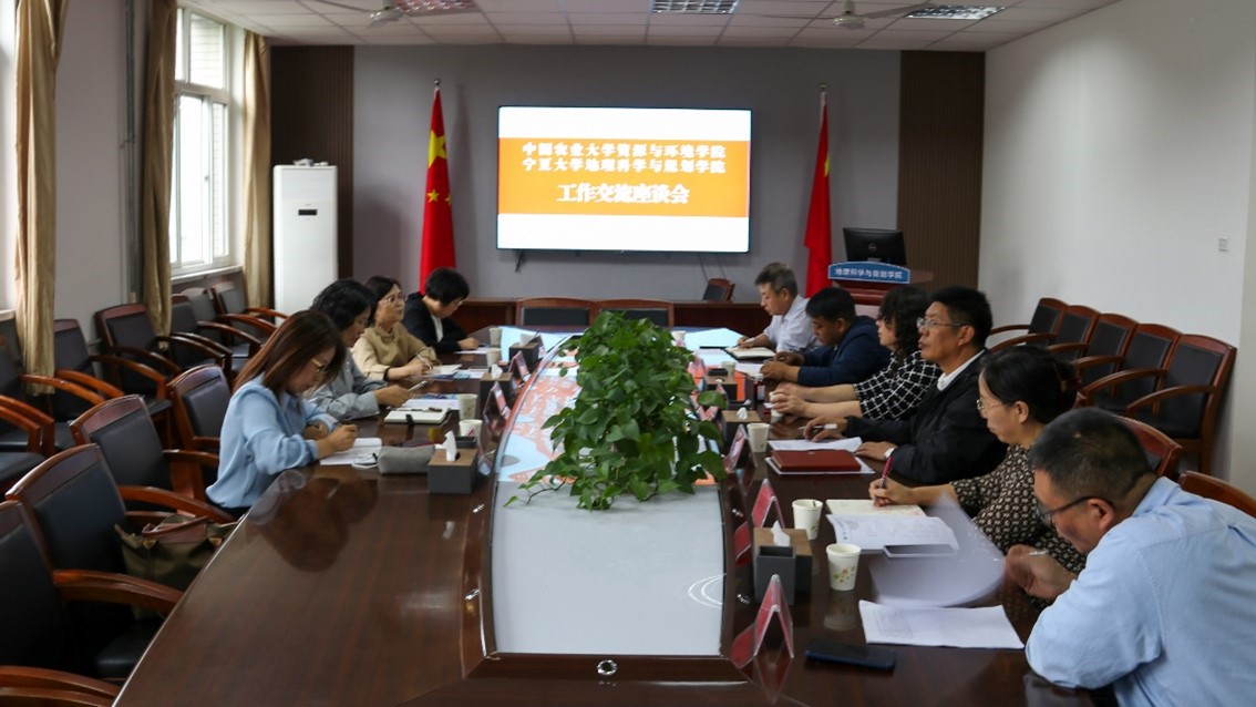 9月27日,中国农业大学资源与环境学院党委书记王雯一行来香蕉视频 调研交流,香蕉视频 本科生院院长张亚红、学院副书记李应海参加座谈会,学院党总支书记陈军胜主持座谈会。