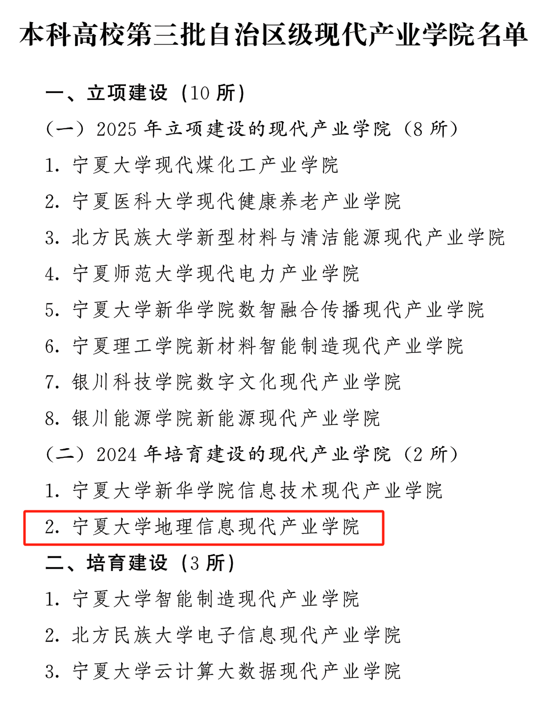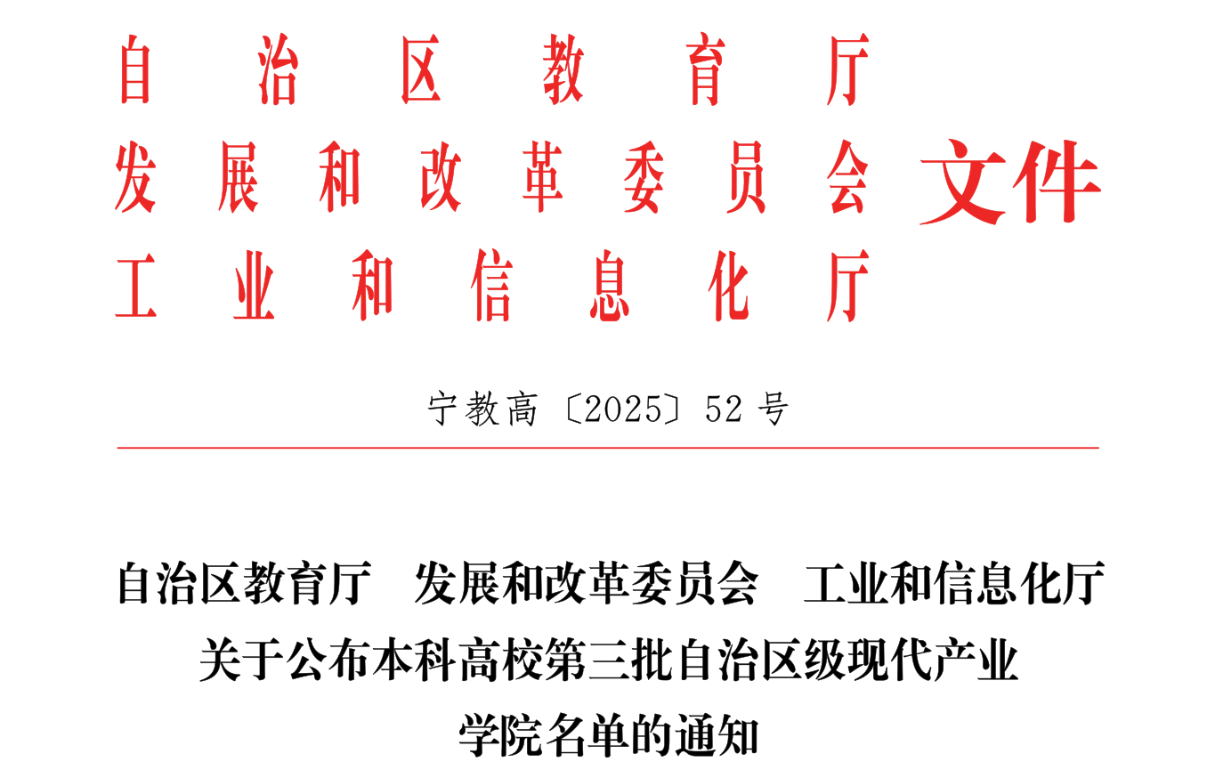 5月13日,宁夏回族自治区教育厅、发展和改革委员会、工业和信息化厅联合发布《关于公布本科高校第三批自治区级现代产业学院名单的通知》(宁教高〔2025〕52号),香蕉视频 申报的“香蕉视频 地理信息现代产业学院”正式脱培,成功入选自治区级第三批10所现代产业学院立项建设单位。这是香蕉视频 继“北斗与遥感技术应用”微专业建设后,在深化人才培养模式改革,推进产教融合协同育人实践的又一次重大突破,标志着香蕉视频 在深化产教融合、服务自治区“六新六特六优”产业发展战略中迈出关键一步。