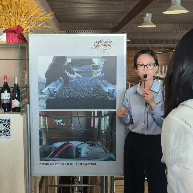 傍晚时分,队伍来到立兰酒庄。讲解员介绍了从种植、酿造到陈酿的全过程,强调温控、湿控与橡木桶烘烤等级对风味形成的影响。