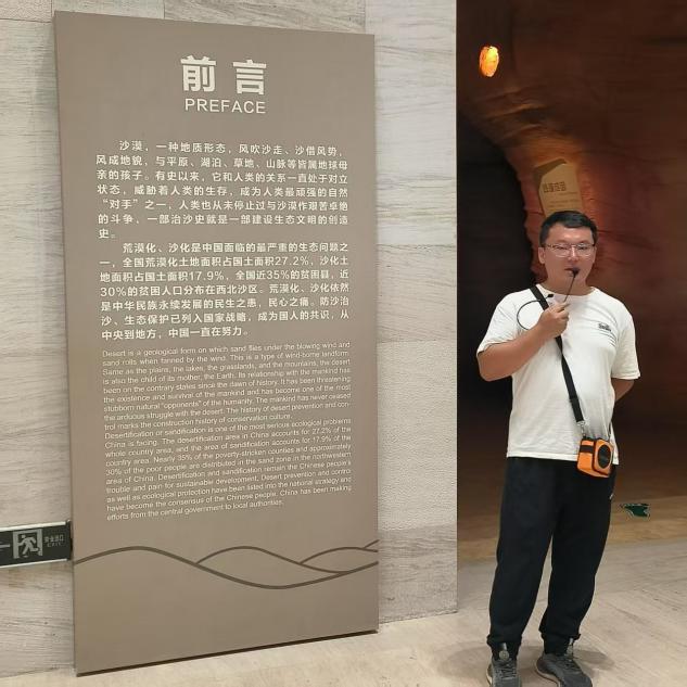 8月2日上午,实习队伍首先来到了全国防沙治沙展览馆。博物馆以“三北”防护林工程为主线,系统呈现中国防沙治沙的历史进程、技术创新和生态效益。实习师生在此了解到宁夏面临的沙地合围形势、沙漠对黄河生态造成的威胁以及宁夏在防沙治沙方面的突出成就。