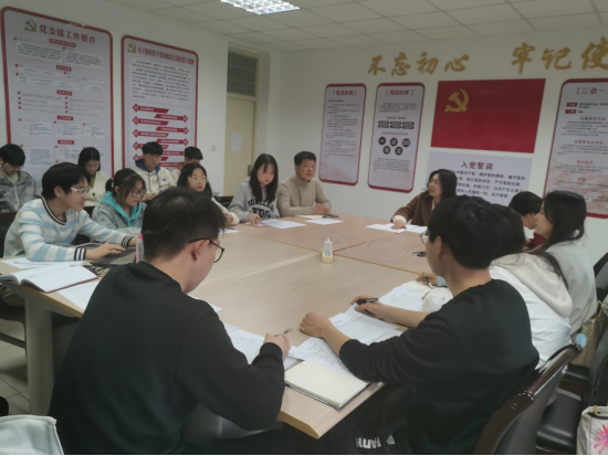 会议开始前,党支部成员之间进行谈心谈话,汇报个人思想与生活问题。会议上,谭颖首先带领大家共同学习党的二十大报告,接下来谭颖代表支部委员会向支部全体党员汇报了本支部2022年度工作情况,对存在问题进行反思,并结合党支部建设实际提出了整改建议。