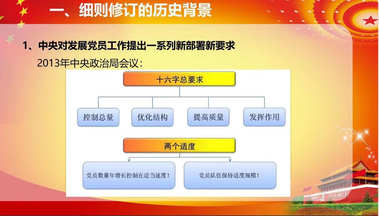 常瑞敏从中央对发展党员工作提出的新部署新要求、发展工作中的新情况新问题、修订过程及修订内容的讲解这三个方面为同学们介绍了《中国共产党发展党员工作细则》修订的历史背景。