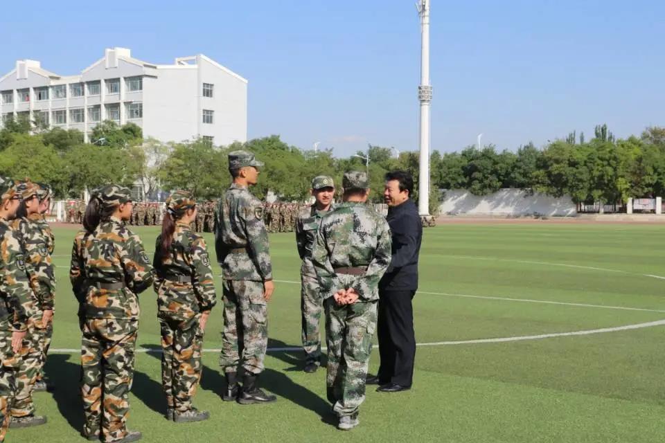 赵勤书记前来慰问参训教官及同学们,眼睛里饱含着对同学们深切的期望,希望同学们能够学习军人身上的意志品质,成为国之栋梁。书记的谆谆教诲与关心,化为烈日下的一袭清风,吹散了笼罩在同学们身上的烦闷,抚平同学们军训的伤痛,让同学们继续奋勇前进。