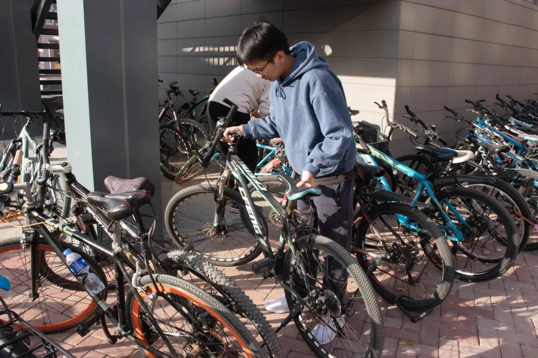 瑟瑟秋风,阻挡不了同学们乐于奉献的激情。活动开始,各班志愿者干劲十足。一部分同学对摆放不整齐的自行车进行逐一摆放,另一部分同学在积极寻找合适的自行车摆放点,大家忙碌的身影,俨然成为校园内一道亮丽的风景线。9号公寓楼下自行车数量较多,较为杂乱,同学们齐心协力,在完成好自己的任务后还积极主动地帮助其他同学,将共享单车统一摆放在指定位置。在蓝色标线的映衬下,校园环境显得更加整齐划一,美丽舒心。