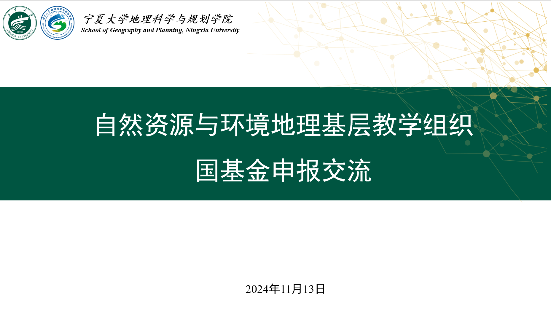 11月13日,自然资源与环境地理基层教学组织开展了以“国基金申报交流”为主题的教研活动。本年度国家自然科学基金获得者韩磊研究员和黑生强博士分别分享了他们国基金申报的经验和心得。