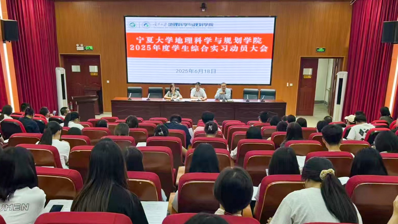 为锻造地理实践力,筑牢安全防线意识,6月18日下午,地理科学与规划学院在知行楼一楼报告厅召开2025年度本科生长途野外综合实习动员大会。学院党总支书记陈军胜、院长文琦、副院长李茜出席会议,实习带队教师、2022级本科生辅导员以及2022级全体本科生参会议。动员大会由李茜主持。