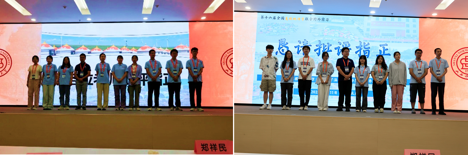 8月11日上午,第十六届全国高校地理学联合野外实习闭幕式于山西师范大学(太原校区)毓秀学堂顺利举行。山西师范大学副校长白文宏、陕西师范大学副校长董治宝教授、太原师范学院管晓刚教授分别致辞。教育部高等教育地理科学类专业教学指导委员会副主任郑祥民教授,以及陕西省有突出贡献专家、原西安石油大学党委书记惠泱河教授对本次实习活动进行全面总结,并为在终期汇报中获奖的小组颁发了奖项。闭幕式在热烈的掌声中结束,标志着本届联合野外实习顺利完成。