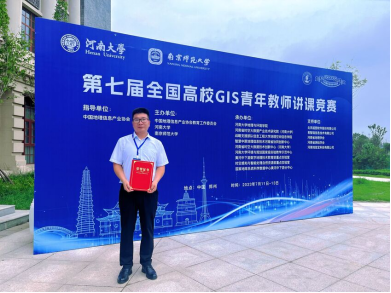 2023年7月11-13日,第七届全国高校GIS青年教师讲课竞赛在河南大学(郑州校区)成功举办。我院遥感与地理信息工程系教师李吉龙博士参加竞赛,并荣获一等奖。